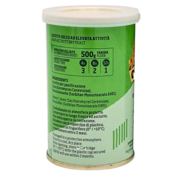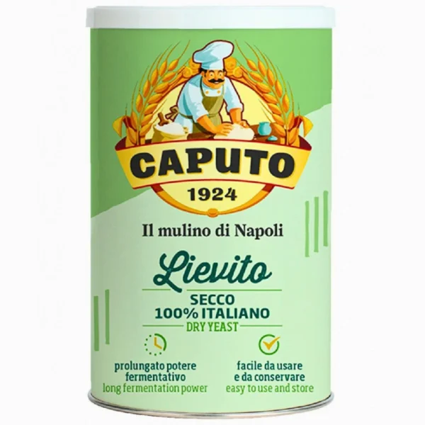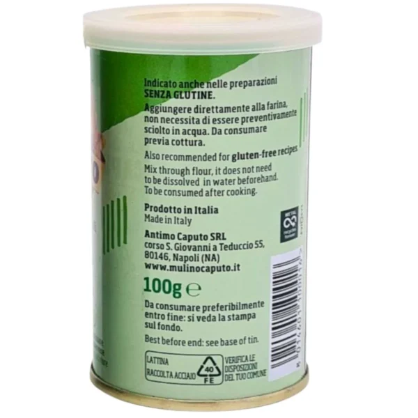 Blikje met 100 droge gist van het Italiaanse merk Caputo.